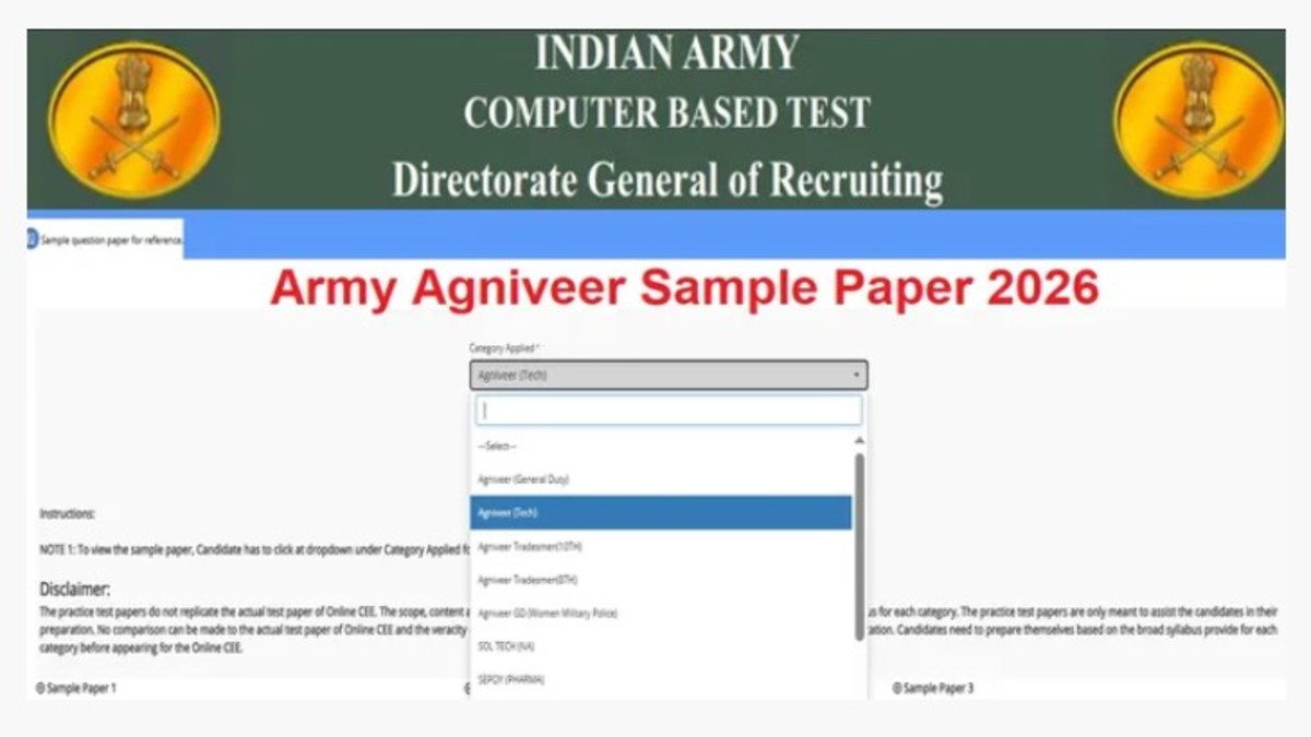 Army Agniveer Sample Paper 2026: इंडियन आर्मी अग्निवीर भर्ती की तैयारियों के लिए सैंपल पेपर जारी, यहां डाउनलोड करें PDF