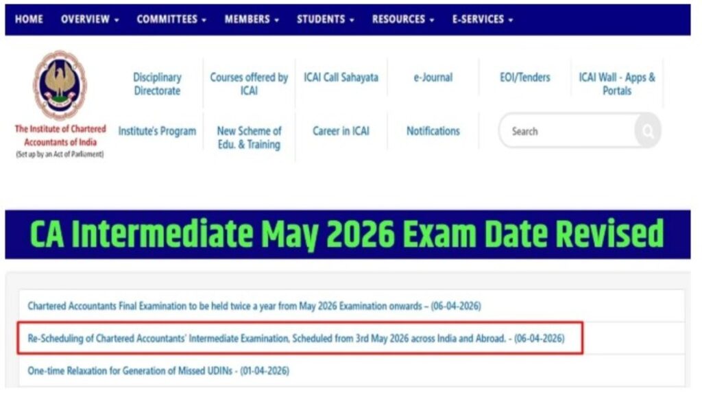 CA Intermediate Exam Date 2026: ICAI ने बदला सीए इंटर परीक्षा का शेड्यूल, अब 5 मई से शुरू होंगे एग्जाम