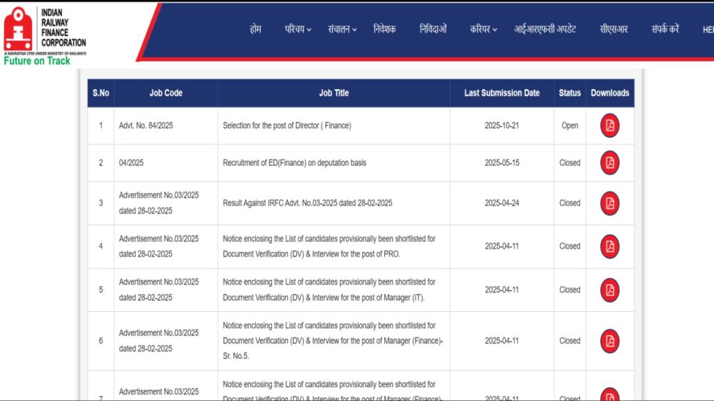 “आईआरएफसी भर्ती 2026” वाले लिंक पर।